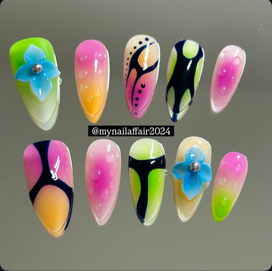 Our almond-shaped press-on nails are handmade, reusable, and designed to elongate the fingers with a natural, elegant silhouette. Perfect for both everyday wear and special occasions.